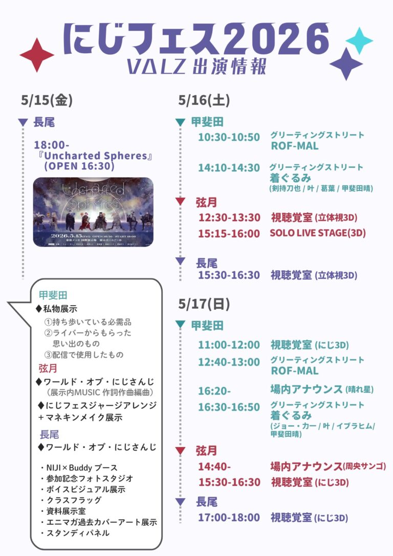 \ #にじフェス2026 /📣開催決定にじさんじ最大級の祭典「にじさんじフェス2026」開催決定🎉5月16日(土)・17日(日) 幕張メッセにて開催!さらに、5月14日(木)〜5月17日(日)の4日間スペシャルステージも実施予定👏詳細は後日発表!続報をお楽しみに✨️🔽「にじさんじフェス2026」開催概要… pic.twitter.com/GAMXoYXcVt— にじさんじ公式🌈🕒 (@nijisanji_app) August 17, 2025